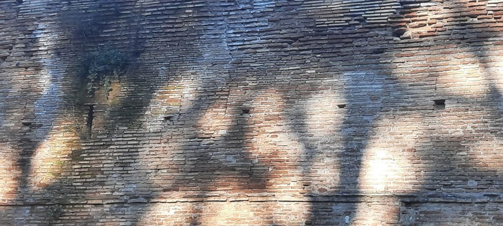 Once past the Ardeatine Bastion, two spans of the outer elevation of the Walls preserve Aurelian masonry with traces of the battlements that later disappeared with the heightening of the walls by Honorius. In the lower part of the first span, the Aurelian curtain wall rests on a 19th century restoration, recognisable by the use of light yellow bricks, the accuracy of the technique and the surface grouting of the mortar beds. In the following span lower down, a large section in reused tuff blocks, with the addition of rows of bricks to level the layers, can be traced back to a medieval restoration.