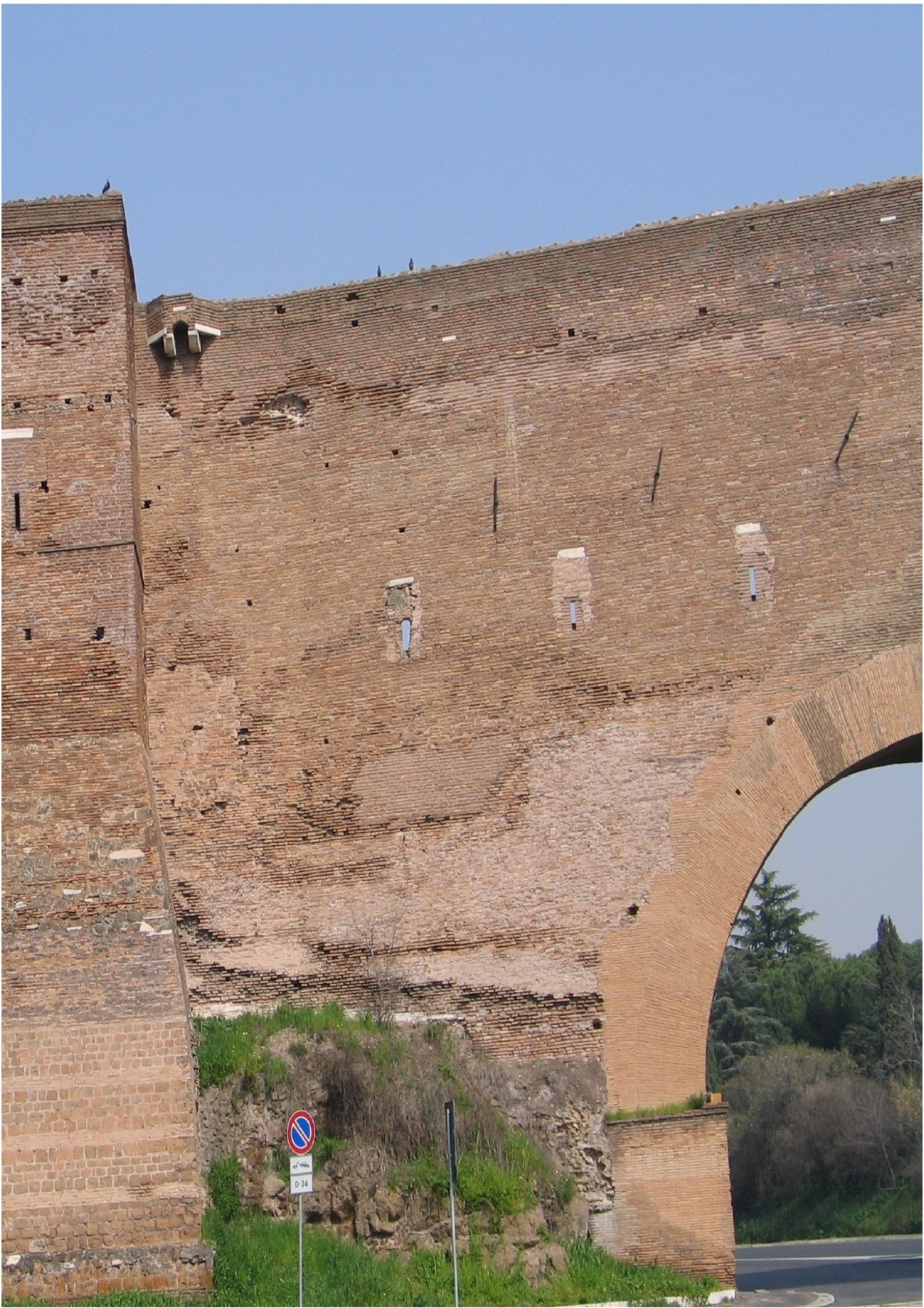 Necessarium Once past Via Cristoforo Colombo, near the first tower on the outer side there is a hanging latrine, heavily restored, with the travertine corbels that supported it. Hanging latrine 1. Hanging latrine