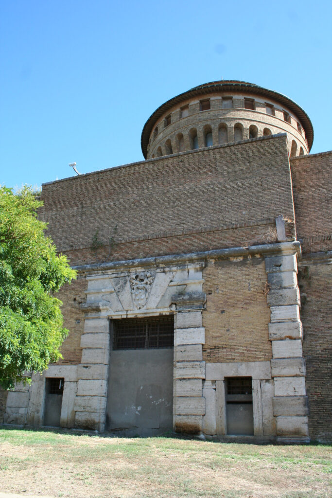 It is a large gateway with an architrave and two small side entrances framed by a double pair of pilasters in smooth ashlars. It is still possible to see the Medici coat of arms above. The gate was the preferred entrance for those coming from the Via Aurelia and led to Via delle Fondamenta, behind the apse of the basilica of Saint Peter’s. It had already been walled up by 1655 but was opened again when Queen Christina of Sweden visited Rome incognito. In 1832, the year when Luigi Ricciardelli’s print was produced, the two side entrances of the gate, erroneously identified as Porta Fabbrica, were once again walled up.
