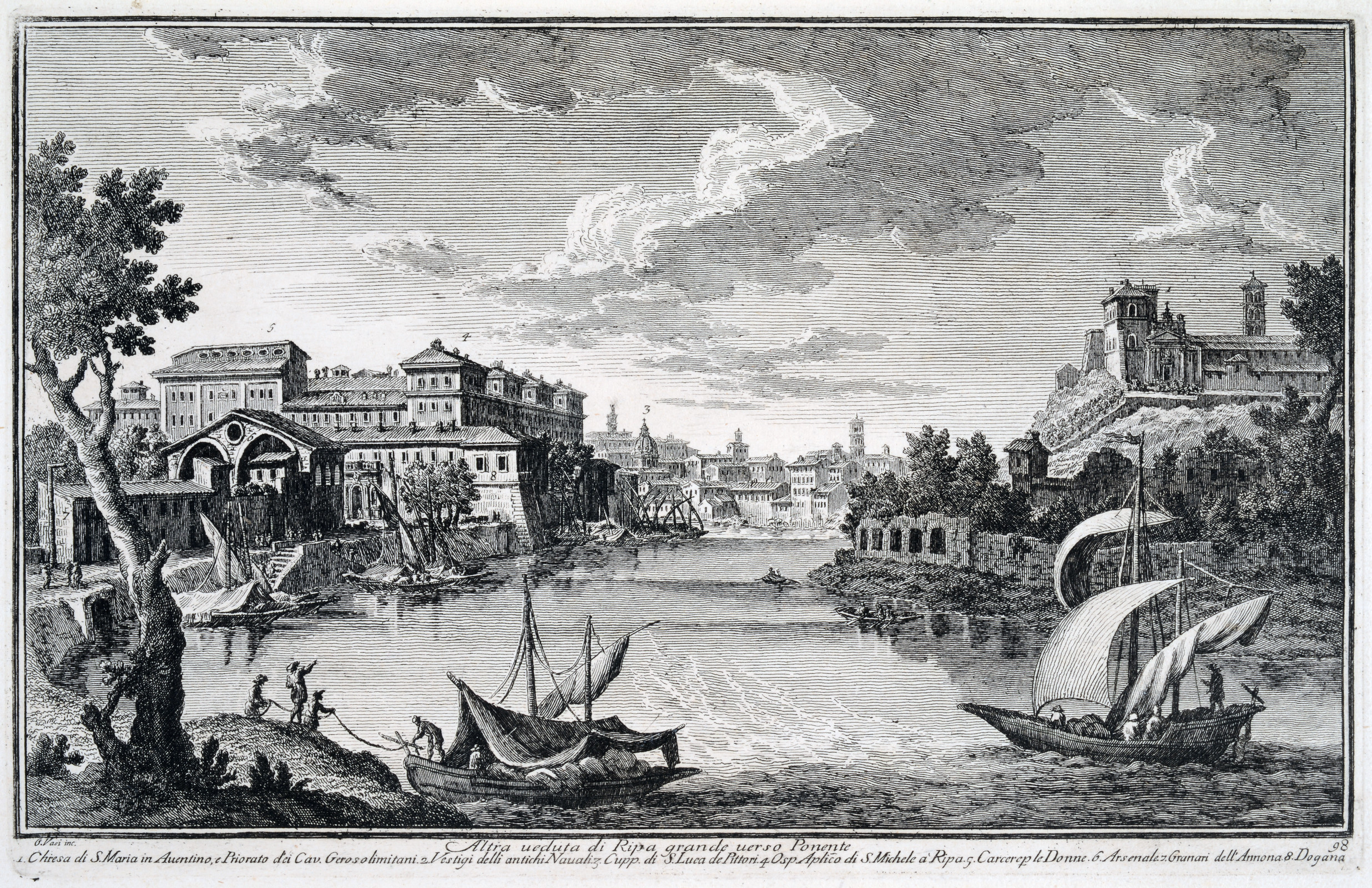 2. G. VASI, Another view of Ripa Grande, looking west, 1786, etching.