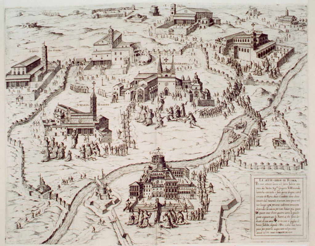 4. E. DUPERAC, Map of Rome with the Seven Churches, 1575, print.