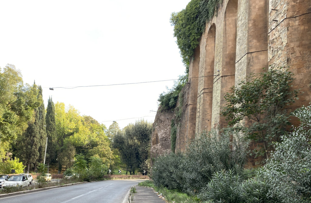 section of the Aurelian Walls with a supporting structure consisting of large relieving arches on