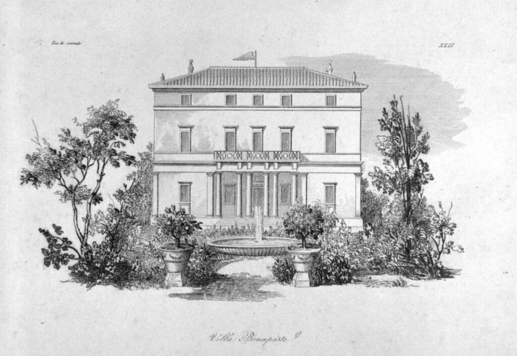 Located along Corso d’Italia between Piazza Fiume and Porta Pia, this splendid villa with gardens, fountains, and exotic plants was originally built in the 18th century for Cardinal Silvio Valenti Gonzaga. In 1816 it became the residence of Paolina Borghese, sister of Napoleon Bonaparte. Later abandoned, it was damaged during the breach of Porta Pia in 1870. Sold to the Prussian government in 1906, it became the embassy to the Holy See. Assigned to France in 1945, it has housed the French Embassy to the Holy See since 1950.