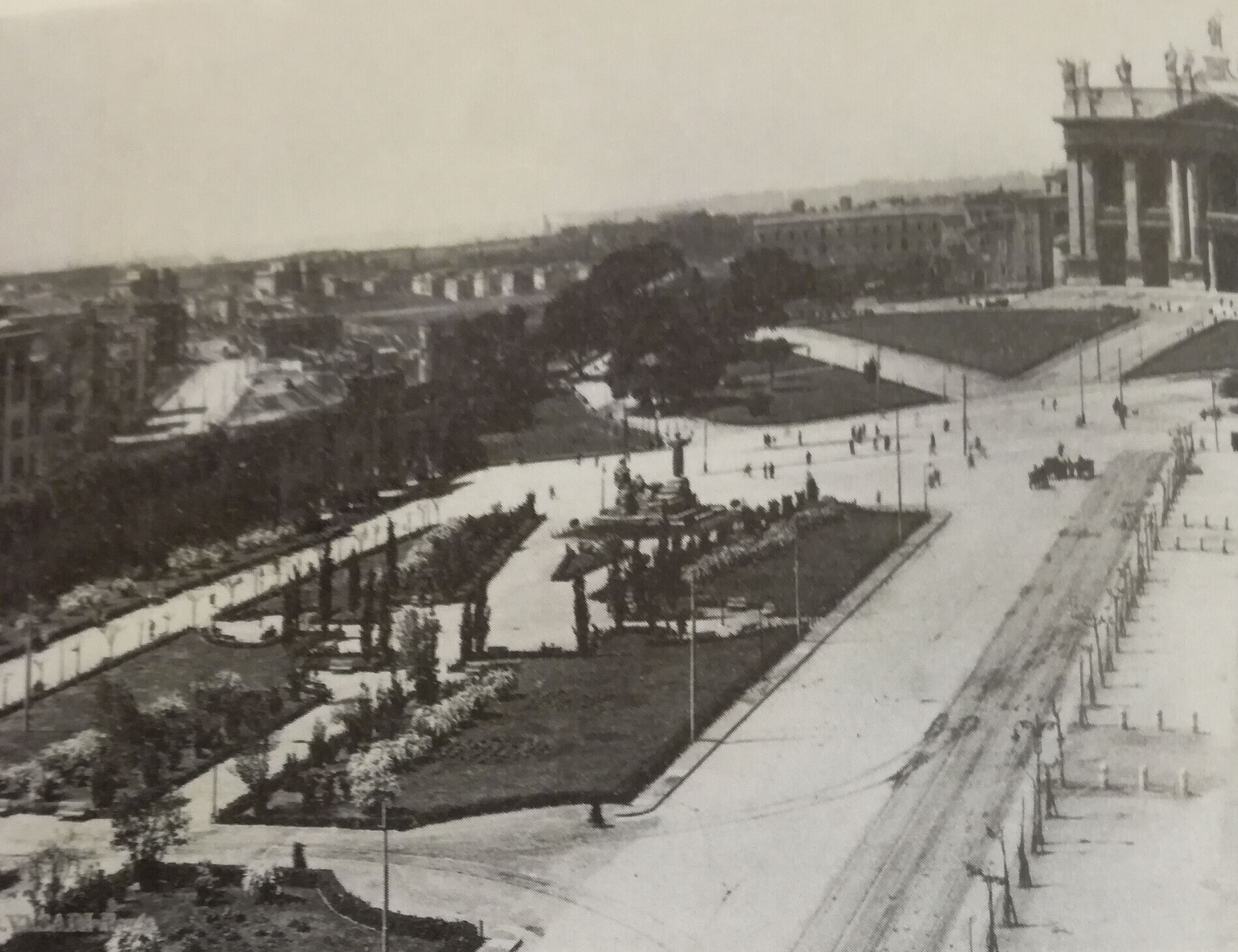 Nel 1926 venne dato incarico all’architetto Raffaele De Vico di realizzare una nuova sistemazione dell’area verde che si estende adiacente alle Mura, lungo l’attuale viale Carlo Felice. Il giardino prevedeva quattro aiuole principali coltivate a prato, bordate da siepi di bosso, due file di vasi con cespugli di melograni e arbusti ornamentali in piena terra, mentre un filare di cipressi sempreverdi delimitava la piazza.