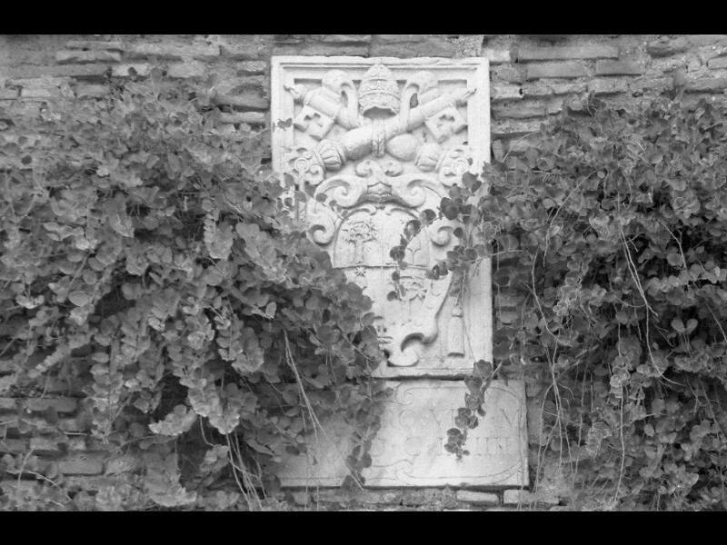 Lo stemma marmoreo con iscrizione testimonia l’intervento di Papa Alessandro VII, che sostituì il camminamento originale, solo in minima parte conservato, con un muro a scarpa, in cui vennero aperte nel XIX secolo nove feritoie per i fucilieri.