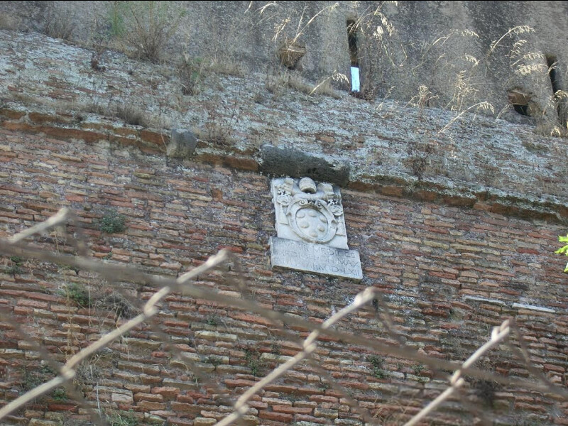 Stemma marmoreo di papa Pio IV Lo stemma marmoreo con iscrizione testimonia il restauro di questo tratto di Mura dovuto all’intervento di Papa Pio IV nell’anno 1562. Stemma marmoreo di papa Pio IV 1. Stemma marmoreo di papa Pio IV