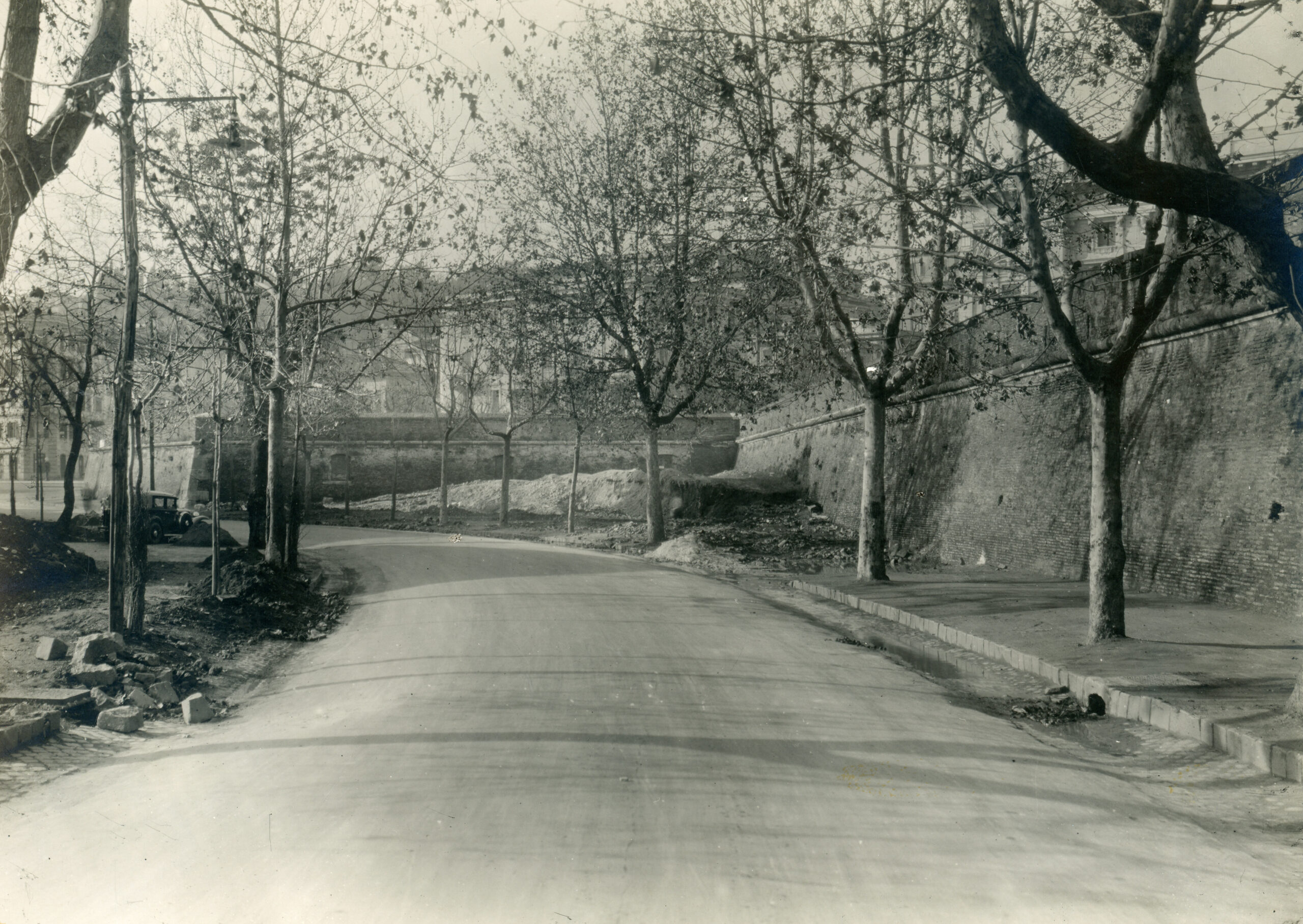 Viale Trastevere (già viale del Re) Veduta di viale del Re con le mura urbane nei pressi di porta Portese, 1932-1944, gelatina 1. Veduta di viale del Re con le mura urbane nei pressi di porta Portese, 1932-1944, gelatina