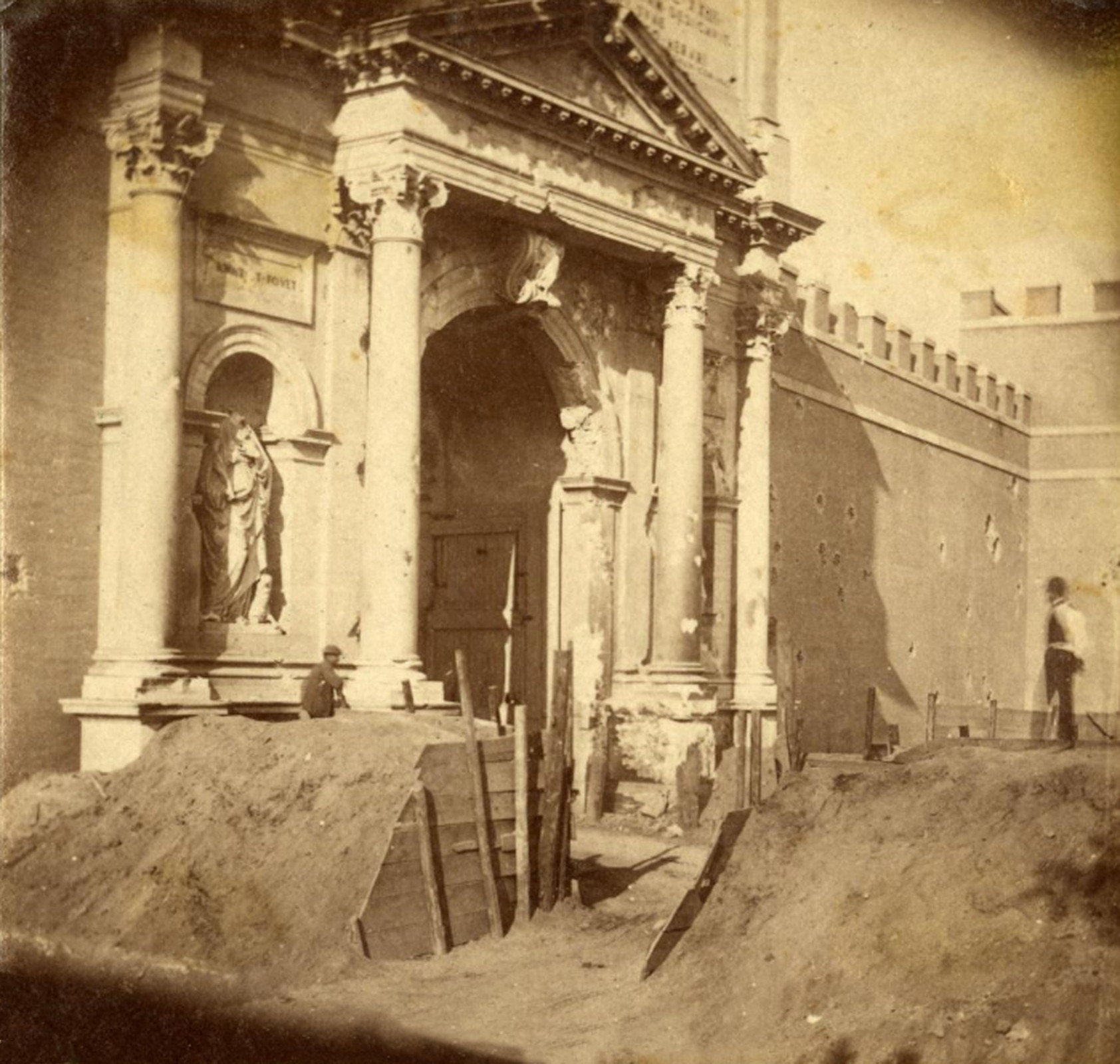 2. Lapide Pio VI apposta in occasione della realizzazione della recinzione del deposito di legname presso il Tevere, collocazione originaria, 1905