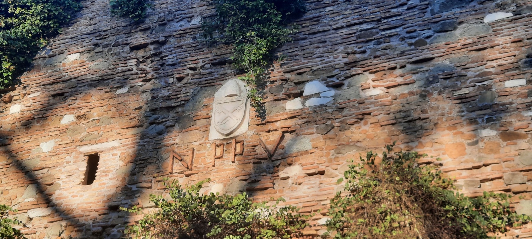 Stemma marmoreo e iscrizione in mattoni. Nicolò V (1447-1455).Restauro di Nicolò V. Feritoie quadrate1. Stemma marmoreo e iscrizione in mattoni. Nicolò V (1447-1455). 2. Restauro di Nicolò V. Feritoie quadrate