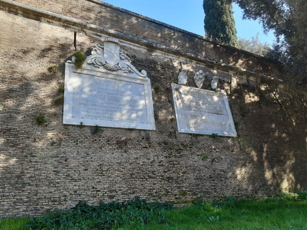Lapide sugli interventi di restauro ottocenteschi su viale delle Mura AurelieLapide sugli interventi di restauro ottocenteschi su viale delle Mura Aurelie1 – 2. Lapide sugli interventi di restauro ottocenteschi su viale delle Mura Aurelie